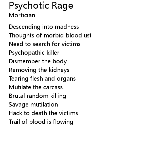 | Song | Psychotic Rage |