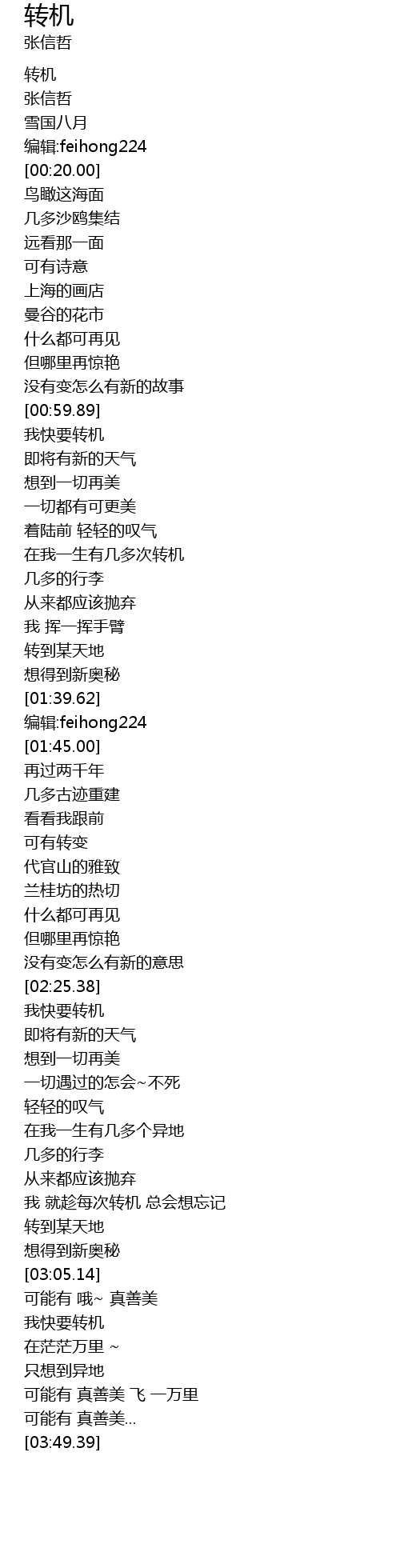 | [00:00.00] | 转机 |