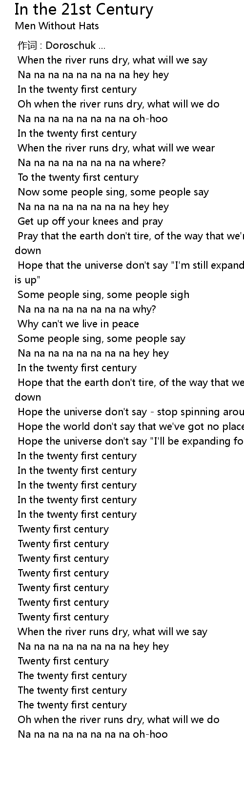 | [04:52.234] | Twenty first century |