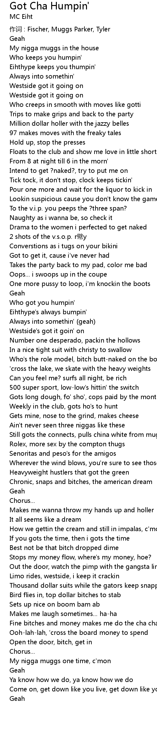 | Who got you humpin' | |