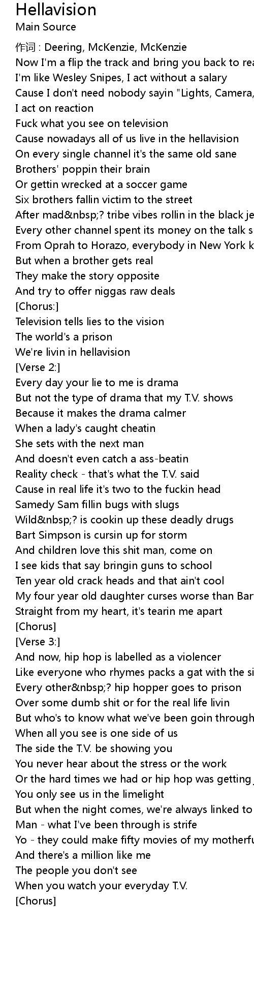 | Cause nowadays all of us live in the hellavision | |
