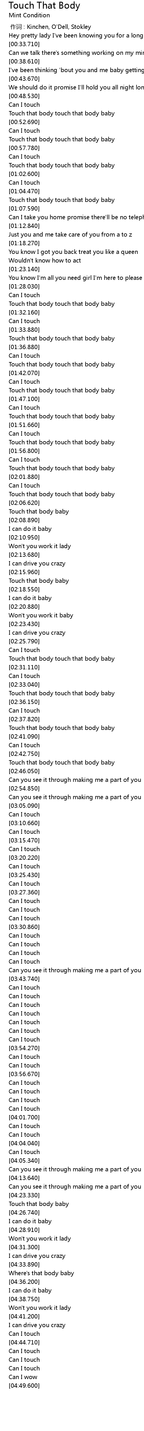 | [00:39.290] | I' ve been thinking ' bout you and me baby getting' it on |