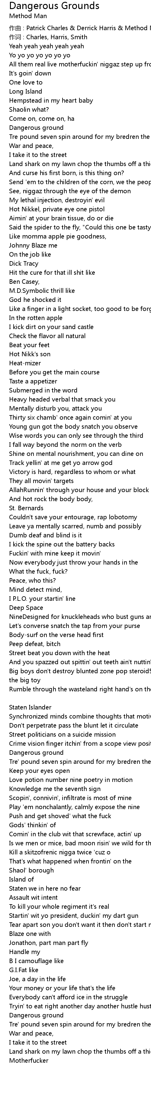| 作曲 : Patrick Charles & Derrick Harris & Method Man | |