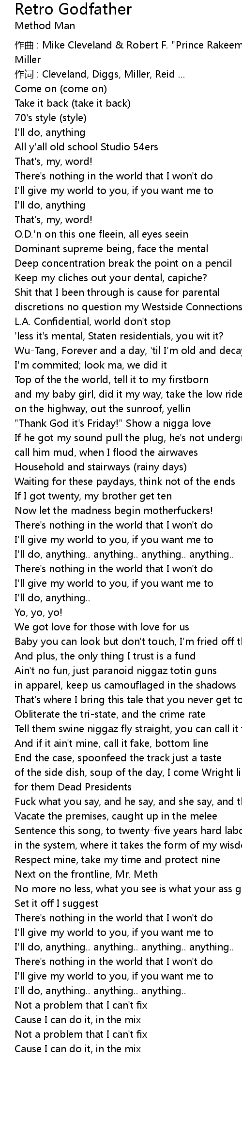 | zuò qǔ : Mike Cleveland Robert F. " Prince Rakeem" Diggs Method Man Ronald Miller | |