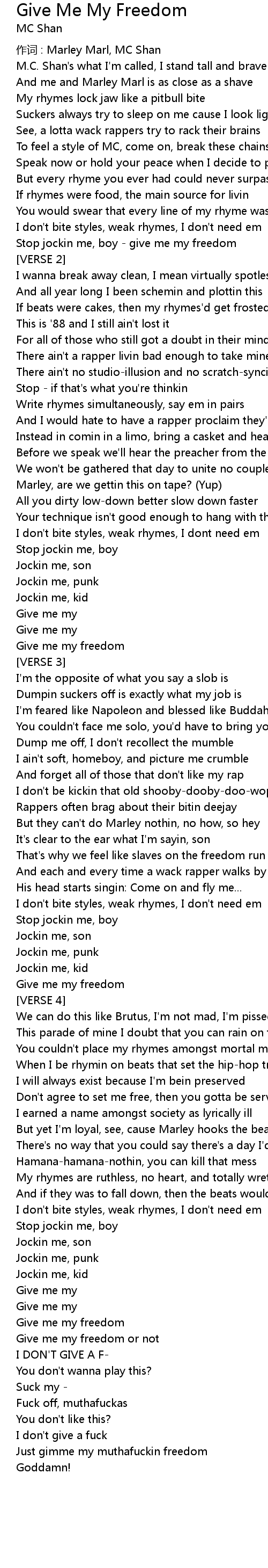 | Just gimme my muthafuckin freedom | |