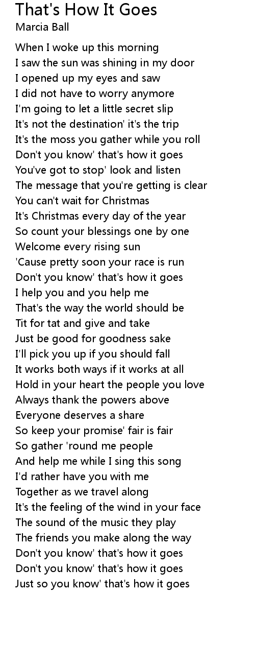Don't you know' that's how it goes |