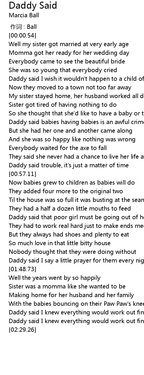 | [02:23.81] | Daddy said I knew everything would work out fine |