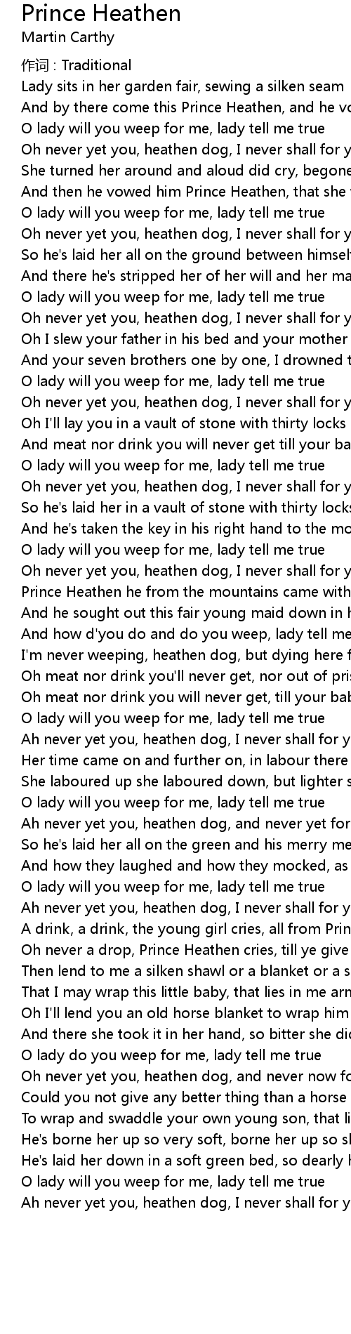 | Prince Heathen he from the mountains came with his merry men all in a line | |