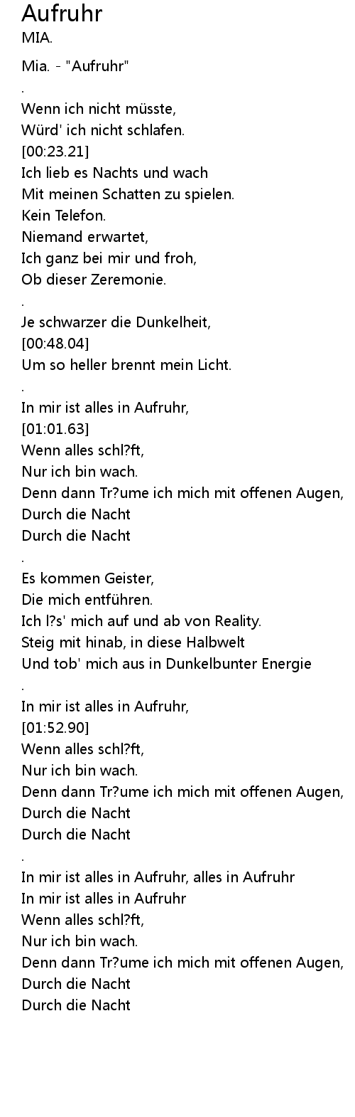 | [01:51.01] | In mir ist alles in Aufruhr, |