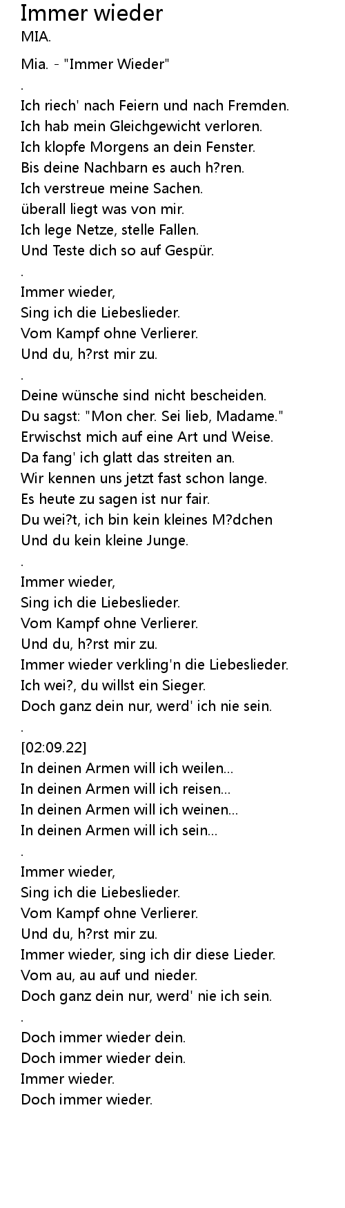 | [00:00.55] | Mia. - "Immer Wieder" |