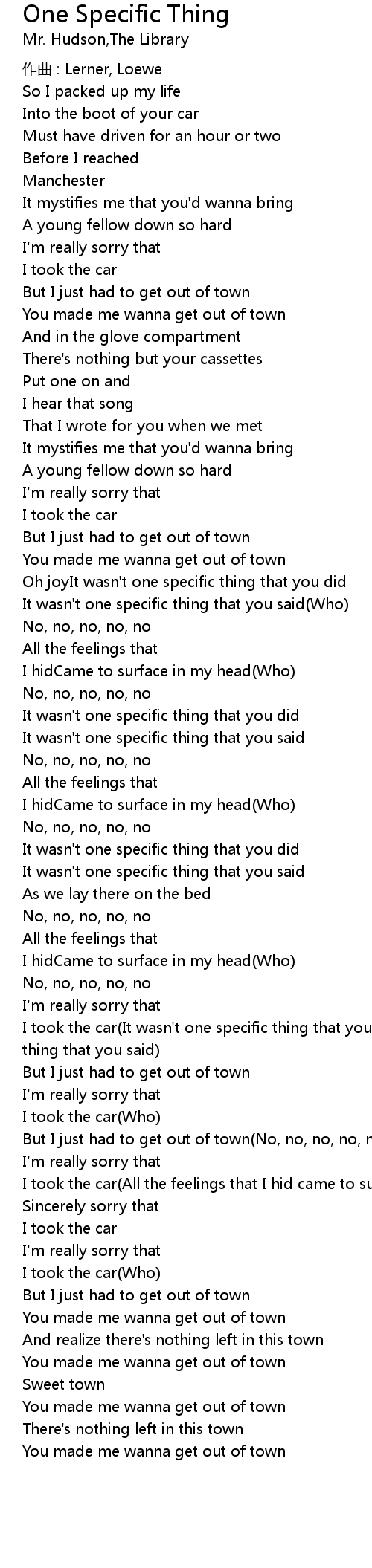 | I took the car(It wasn't one specific thing that you did)(It wasn't one specific thing that you said) | |