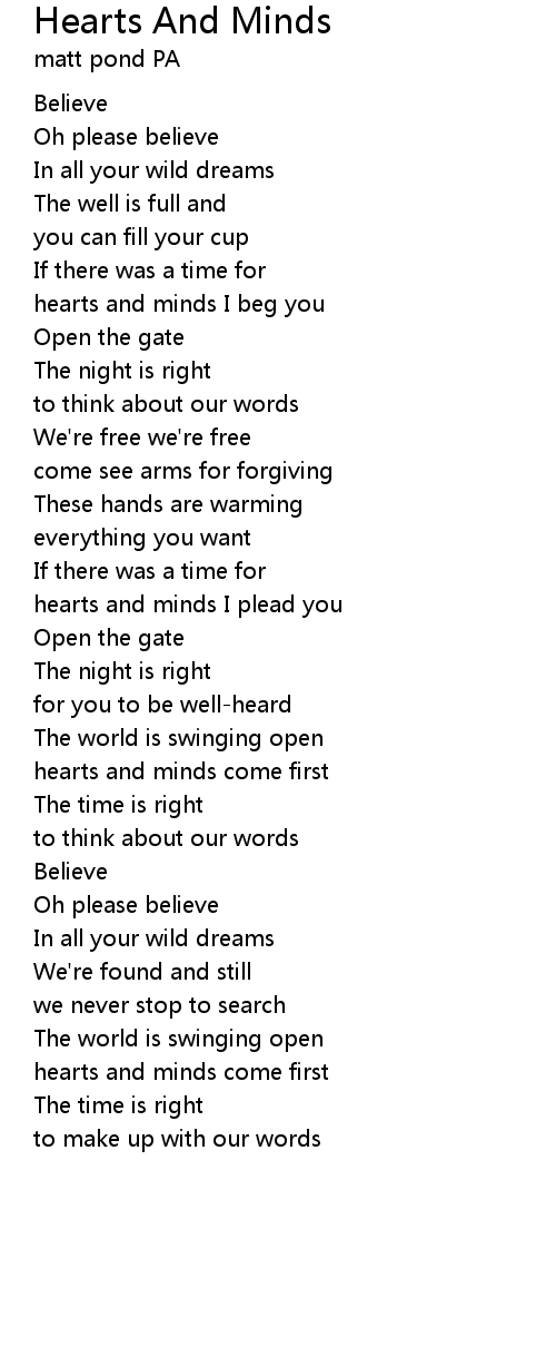 hearts and minds I beg you |