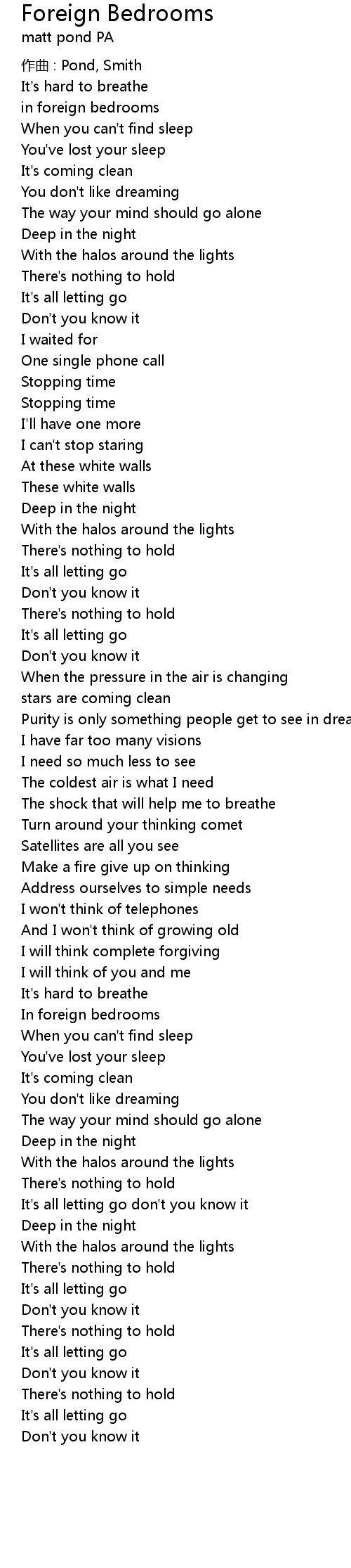 | Song | Foreign Bedrooms |