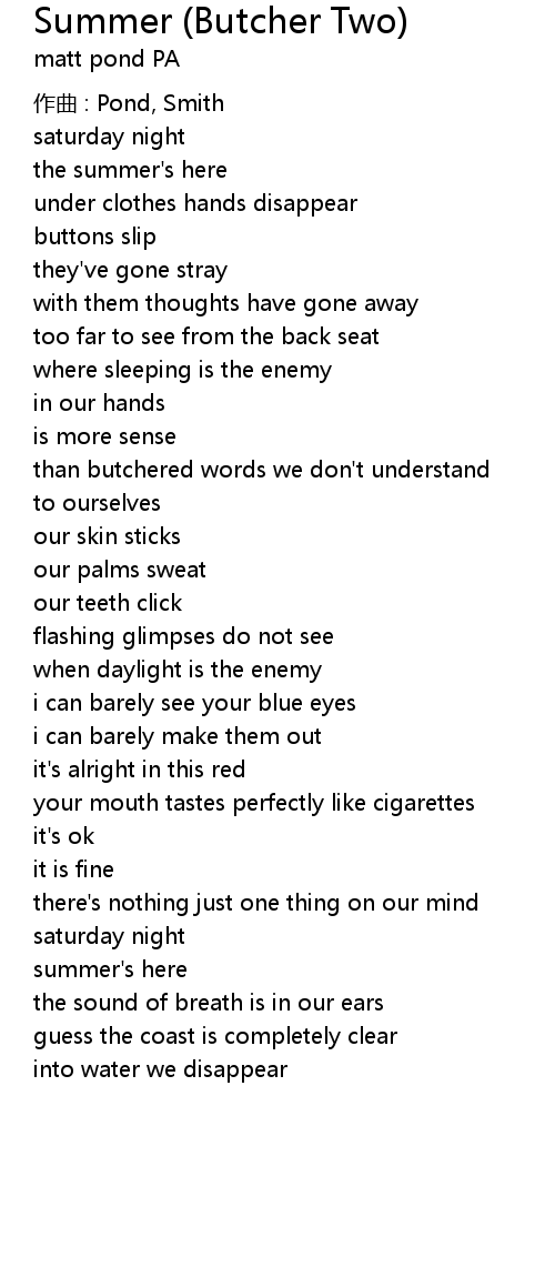 | Song | Summer (Butcher Two) |