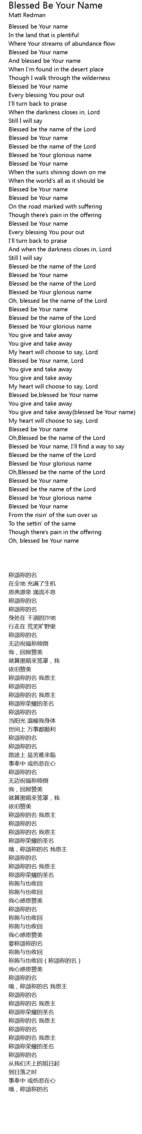 Blessed be Your name |
