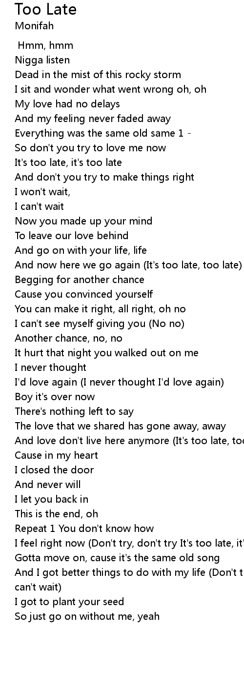 Too Late Lyrics