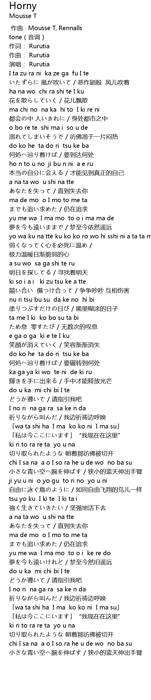 | [00:00.00] | 作曲 : Mousse T, Rennalls |