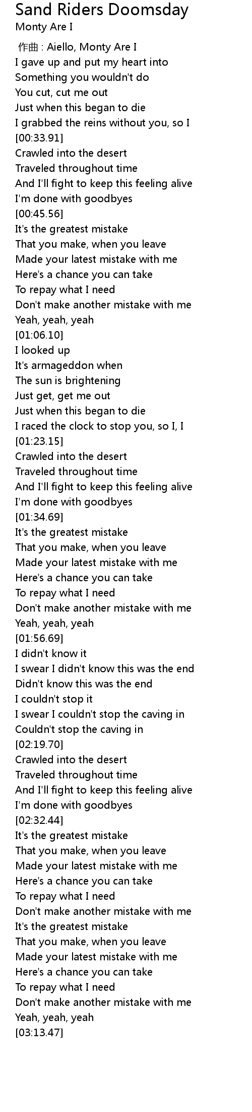 | [00:46.09] | It's the greatest mistake |