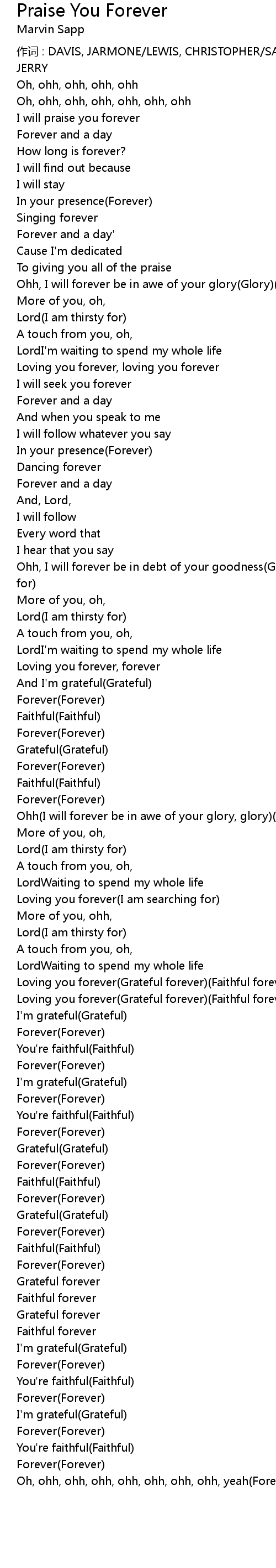 | Ohh, I will forever be in debt of your goodness(Goodness)1,2,3,4(I am searching for) | |