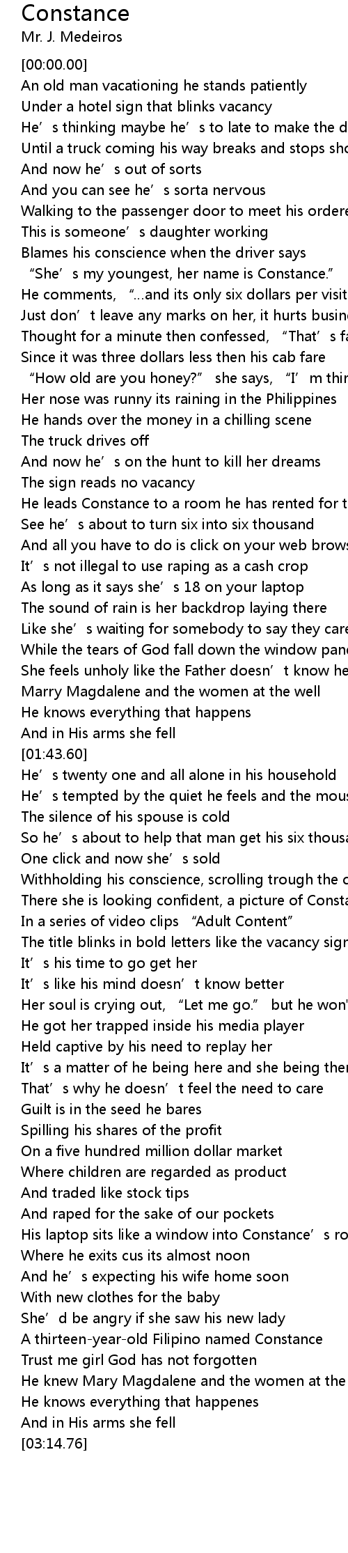 | [03:01.52] | A thirteenyearold Filipino named Constance |