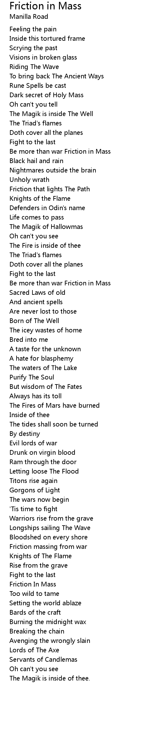 Friction massing from war |