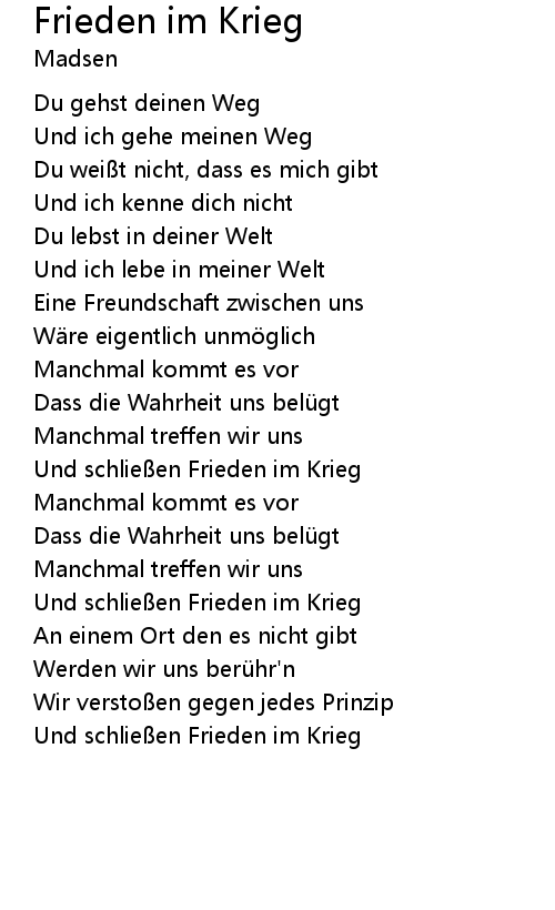 | Song | Frieden im Krieg |