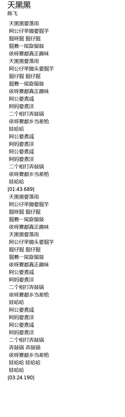 | [01:56.709] | tiān hēi hēi yào luò yǔ |