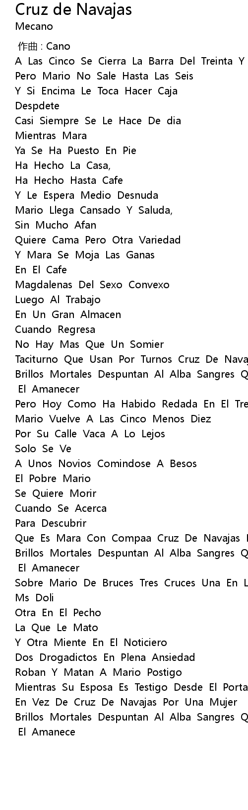 | [04:18.768] | En Vez De Cruz De Navajas Por Una Mujer |