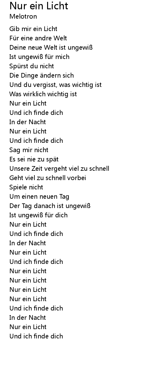 | Song | Nur ein Licht |