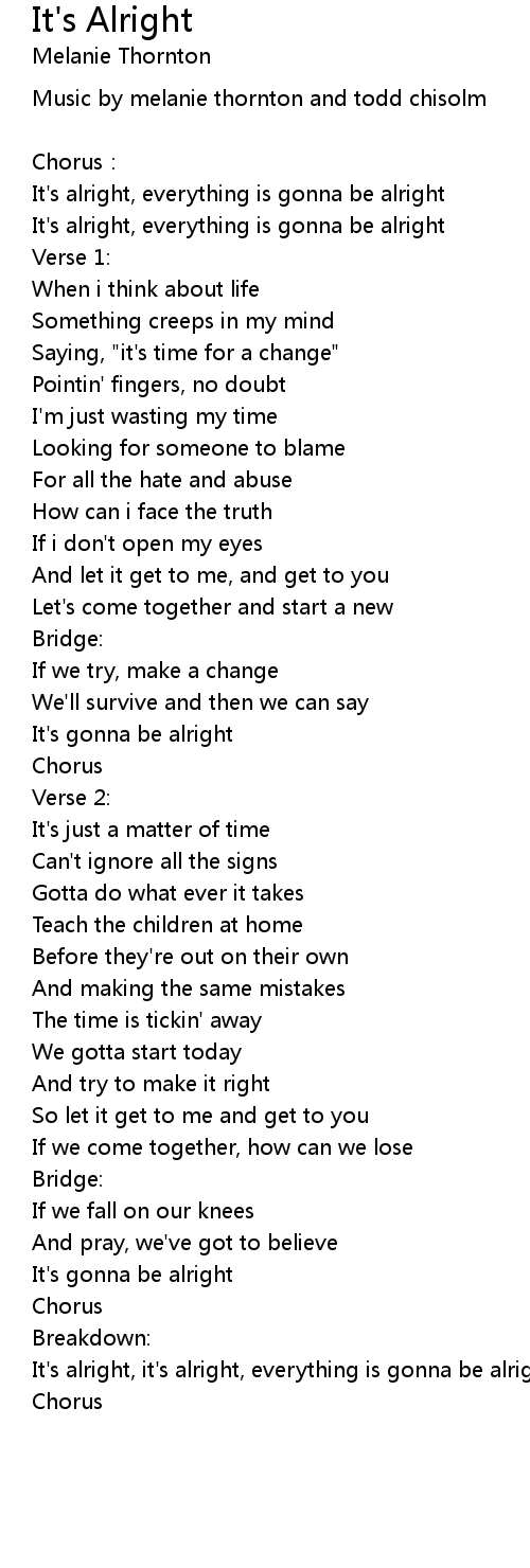 | It' s alright, it' s alright, everything is gonna be alright | |