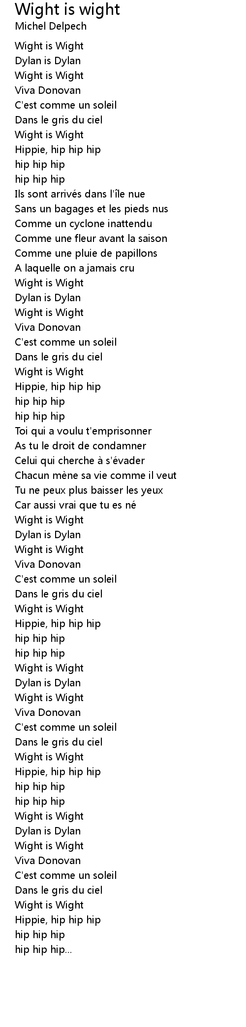 | Song | Wight is wight |