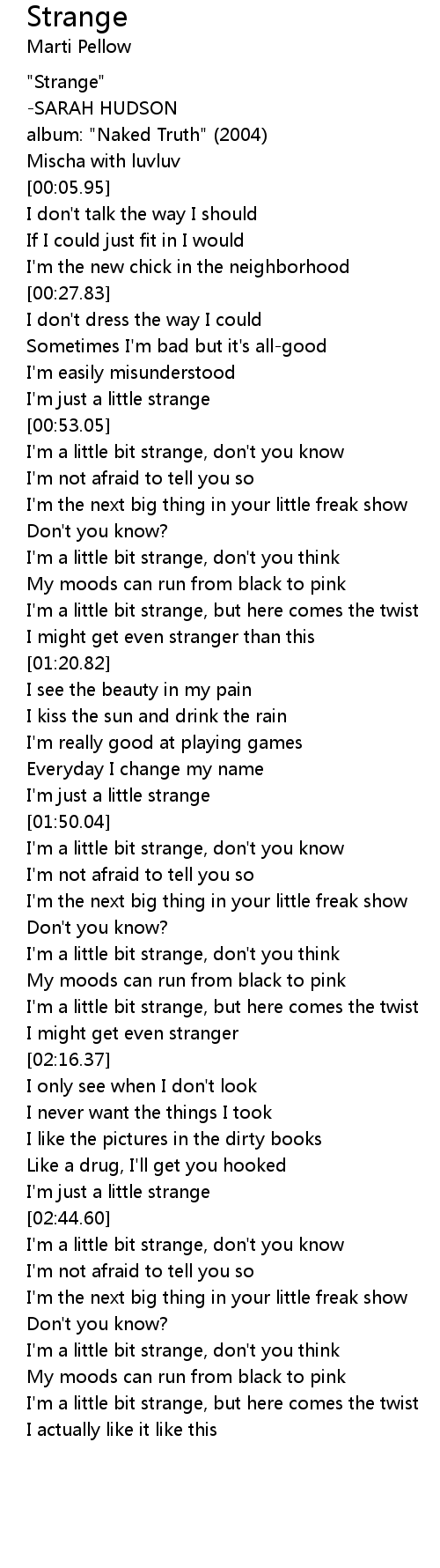[03:12.78] I'm a little bit strange, but here comes the twist