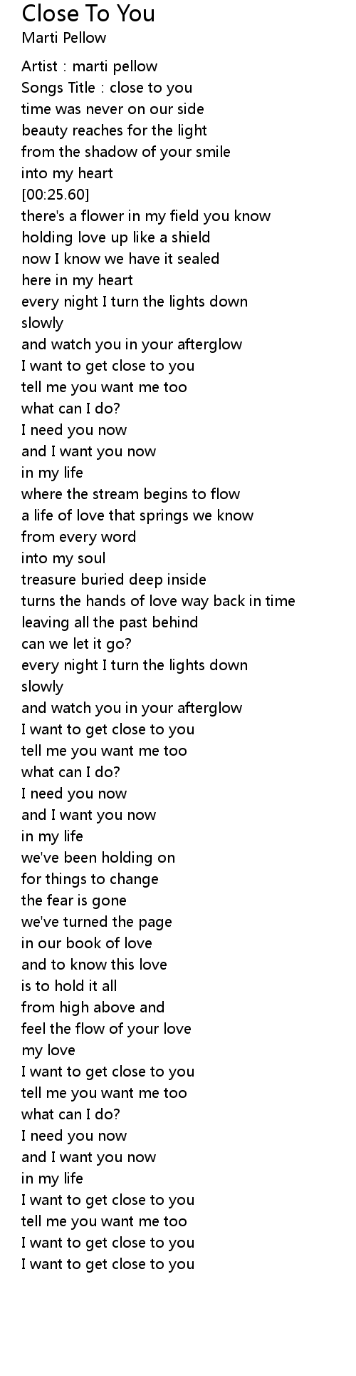 | Song | Close To You |
