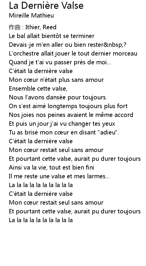| Song | La Dernière Valse |