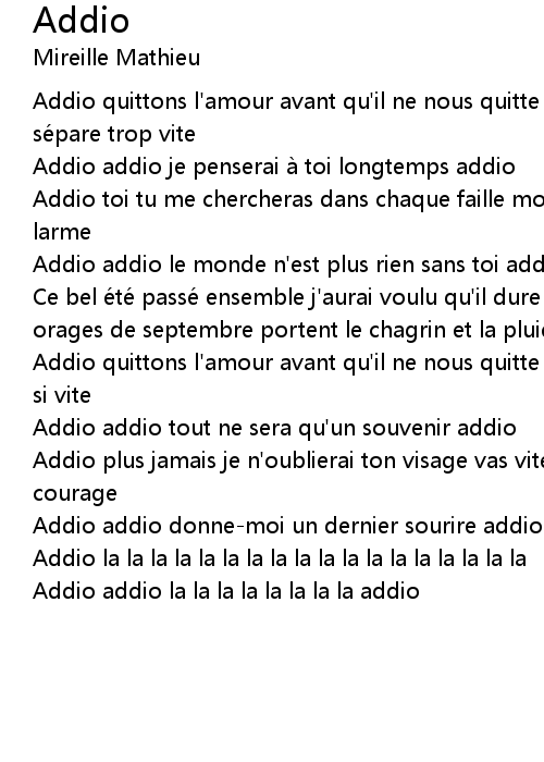 | Addio addio le monde n' est plus rien sans toi addio | |
