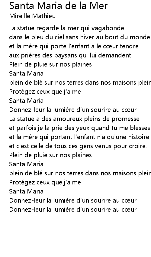| Song | Santa Maria de la Mer |