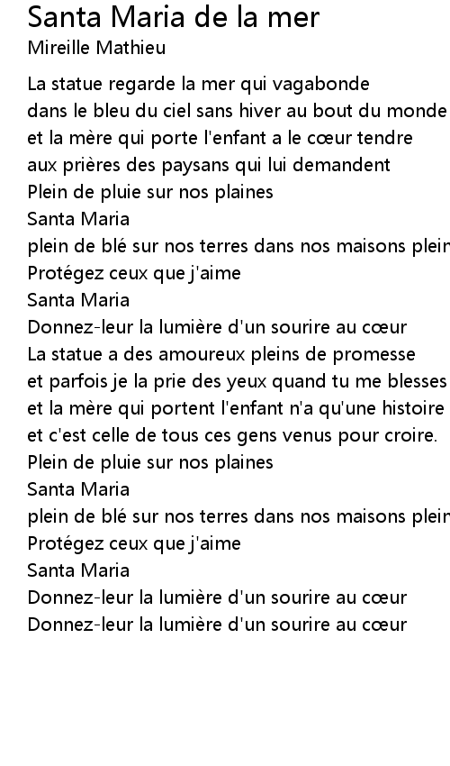 | Song | Santa Maria de la mer |