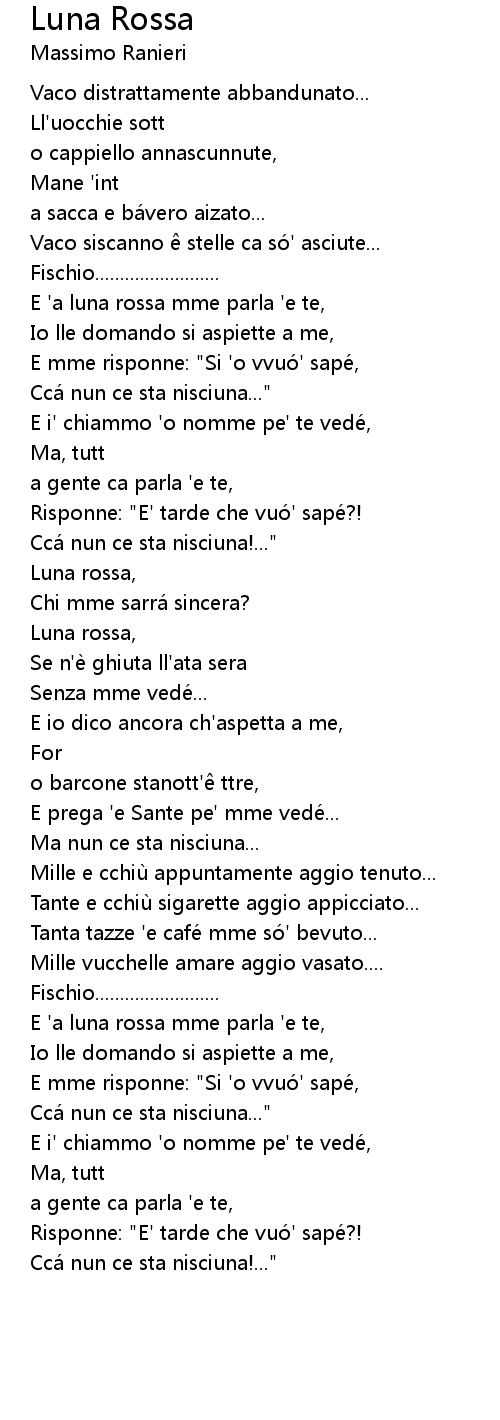 | E ' a luna rossa mme parla ' e te, | |