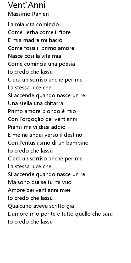 | Song | Vent'Anni |