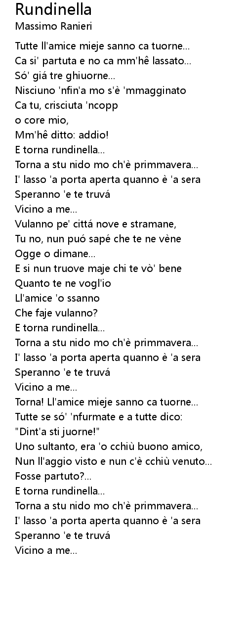 | Torna! Ll'amice mieje sanno ca tuorne... | |