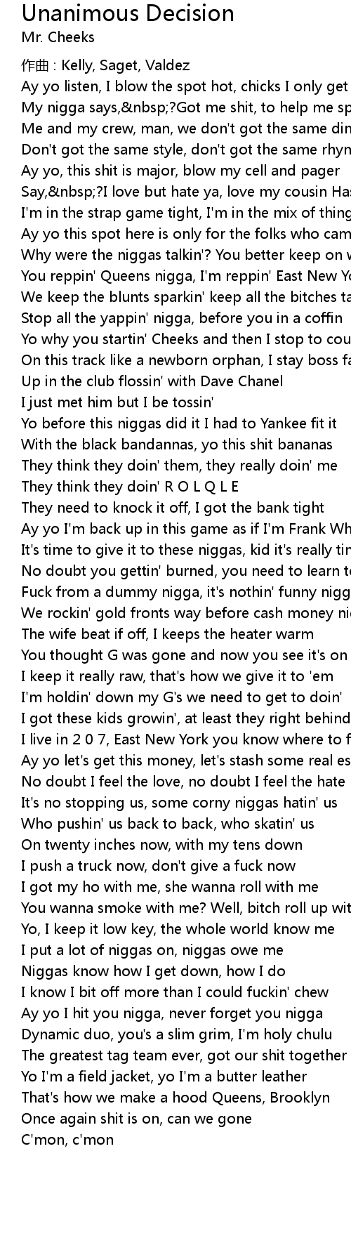 | Yo why you startin' Cheeks and then I stop to cough | |