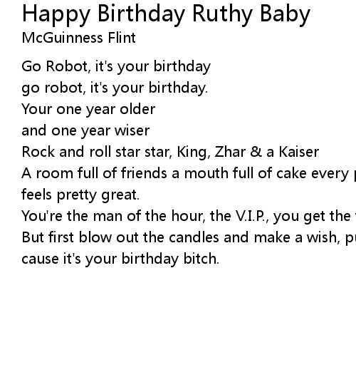 | Song | Happy Birthday Ruthy Baby |