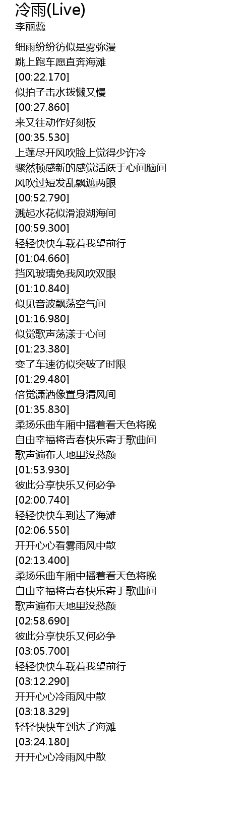 | [03:25.810] | 开开心心冷雨风中散 |