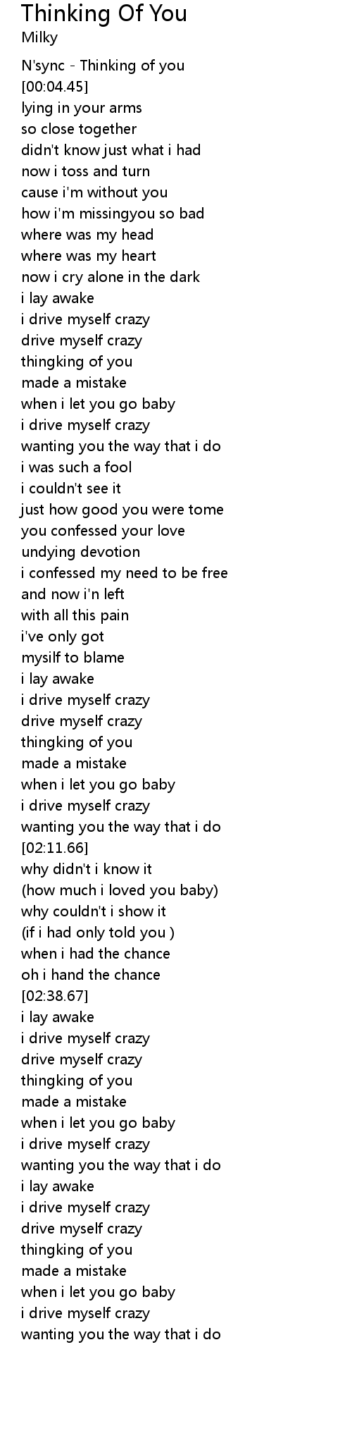 | [00:02.35] | N'sync - Thinking of you |