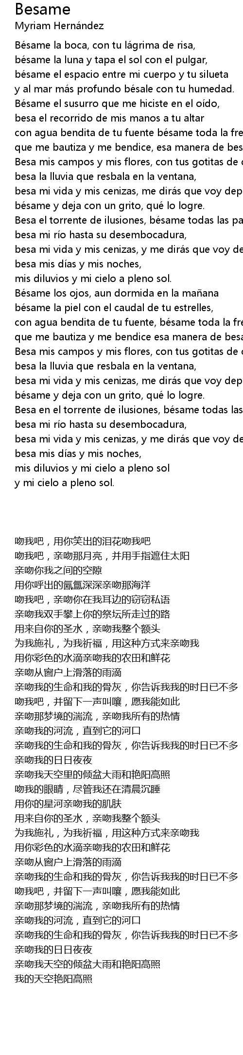 | [03:34.41] | Besa en el torrente de ilusiones, be same todas las pasiones |
