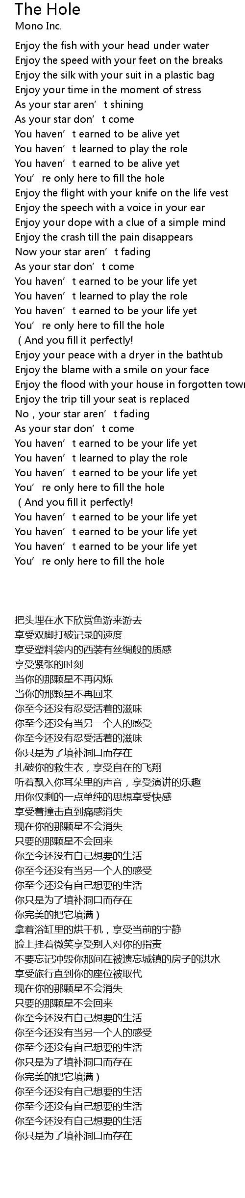 | Song | The Hole |