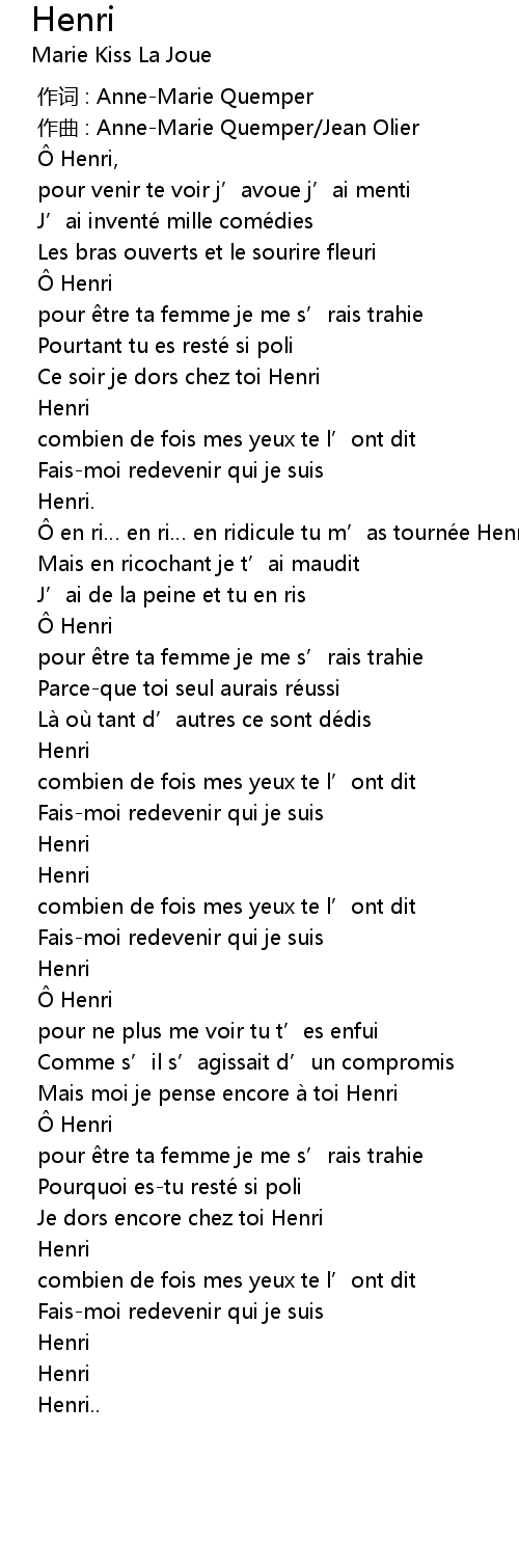 | [00:44.57] | Ce soir je dors chez toi Henri |