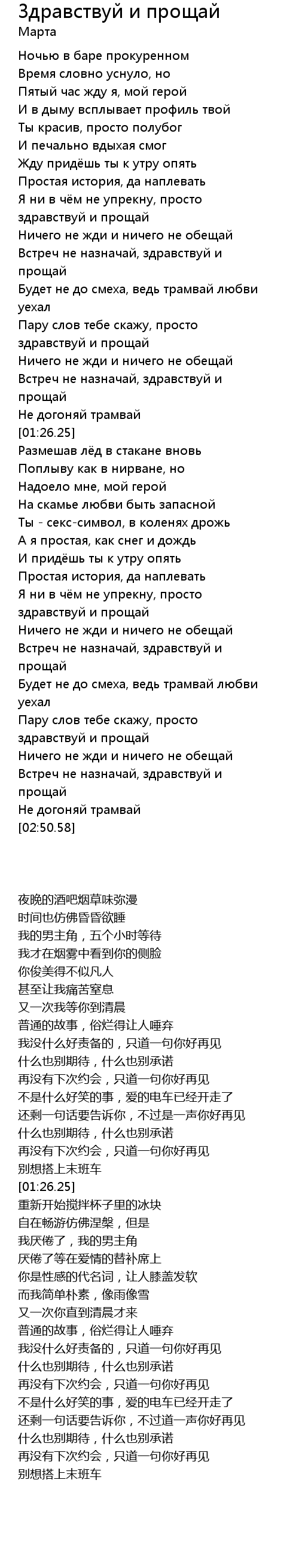 Я ни в чём не упрекну, просто здравствуй и прощай |