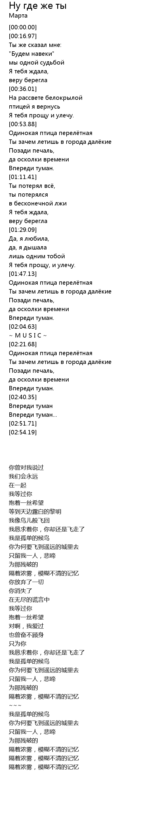 | [00:58.43] | Ты зачем летишь в города далёкие |