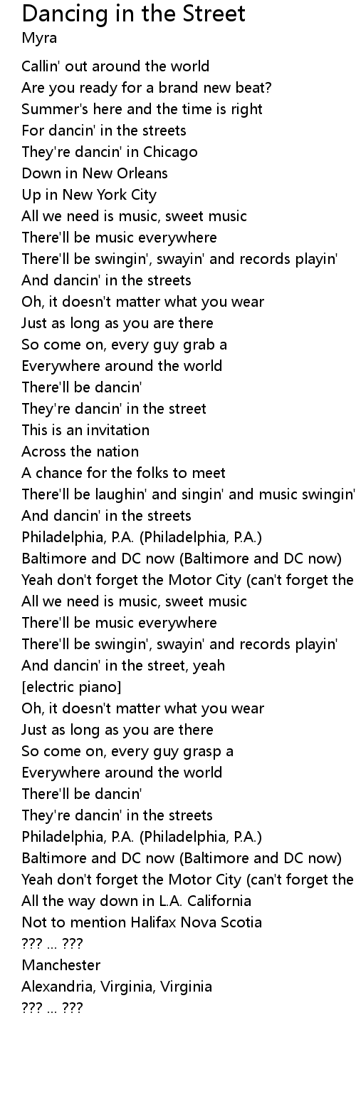 | And dancin' in the street, yeah | |